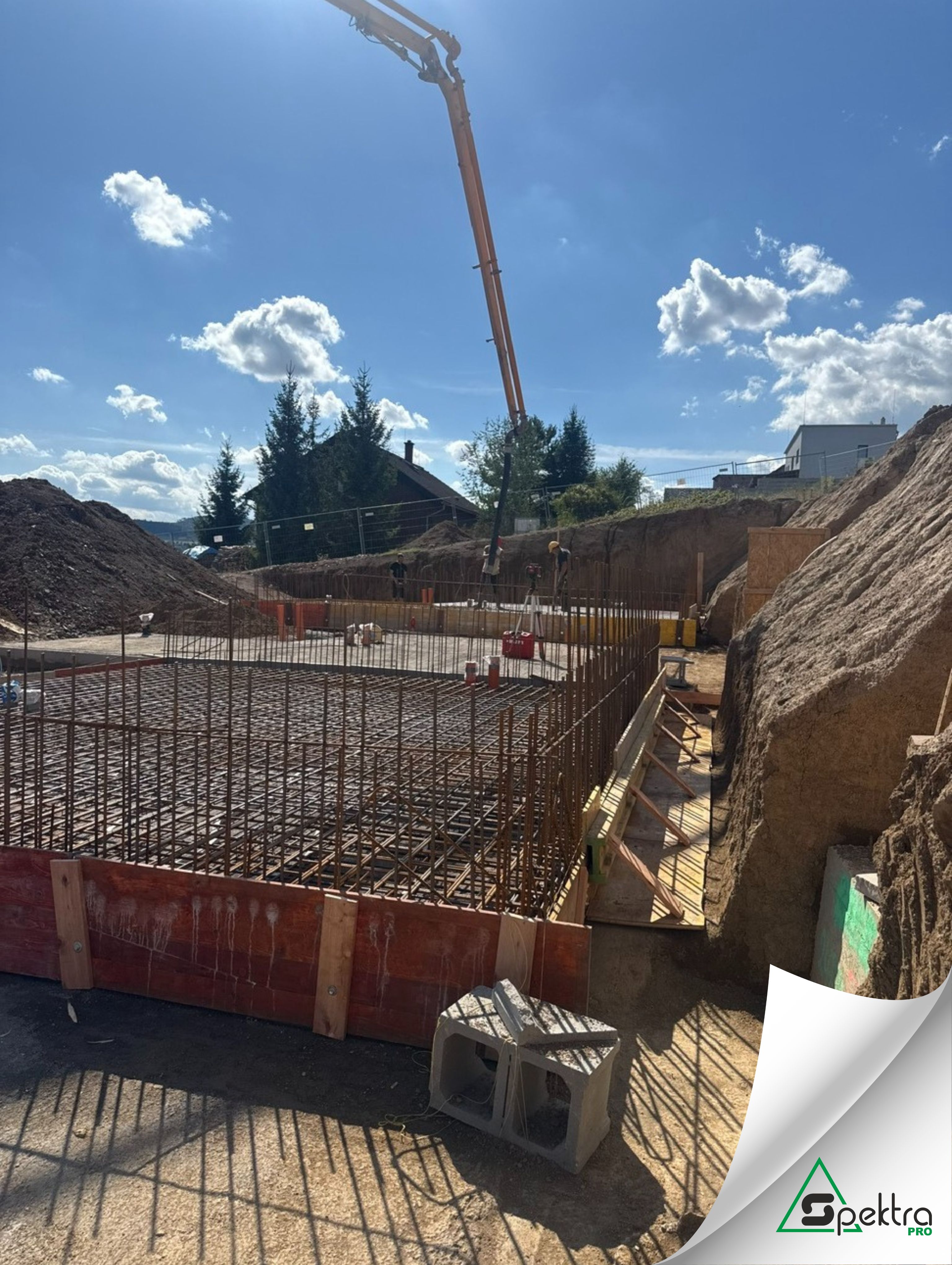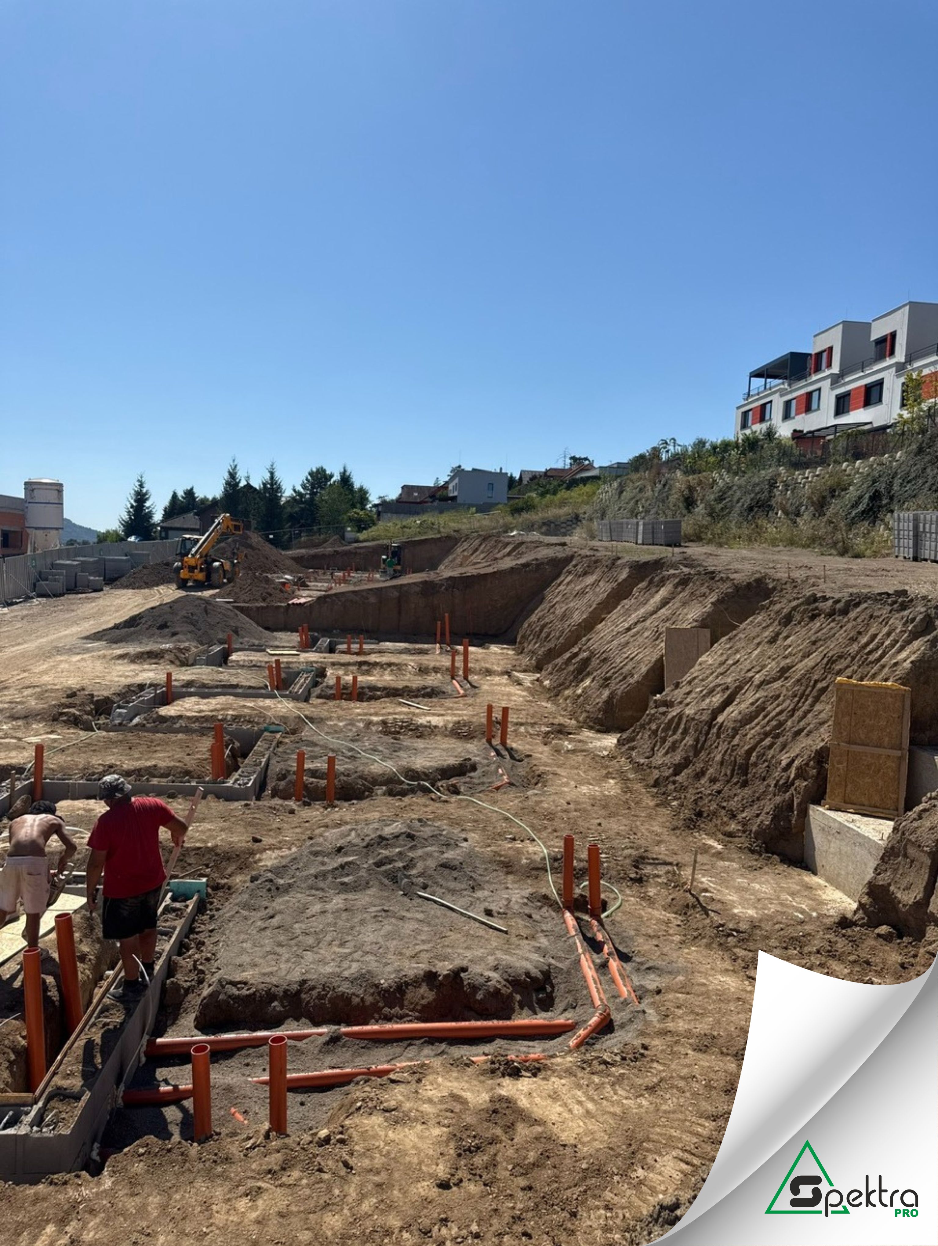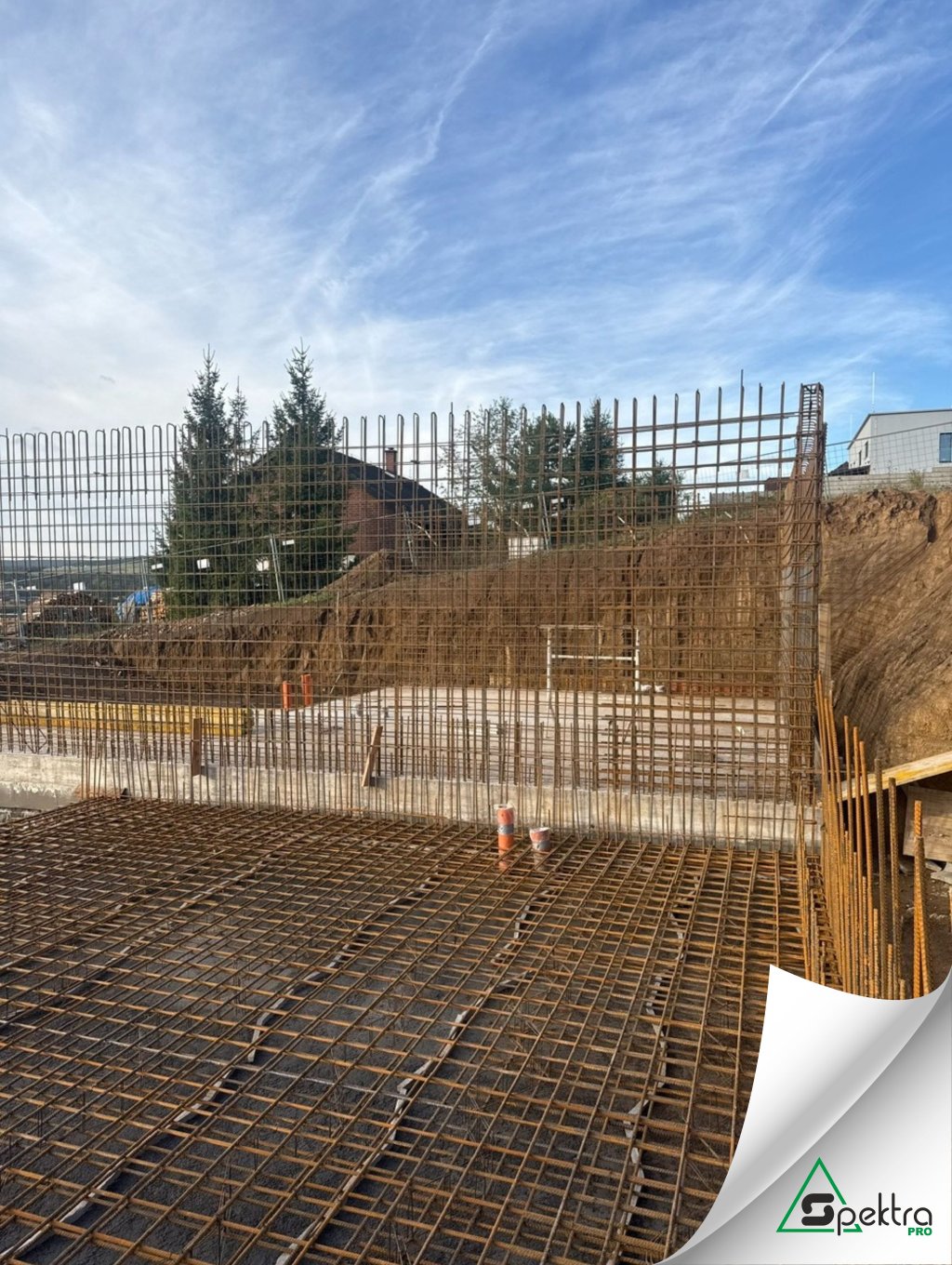 V tomto měsíci jsme dokončili zemní práce, betonáže základových pasů, ležatou kanalizaci a podkladní betony.