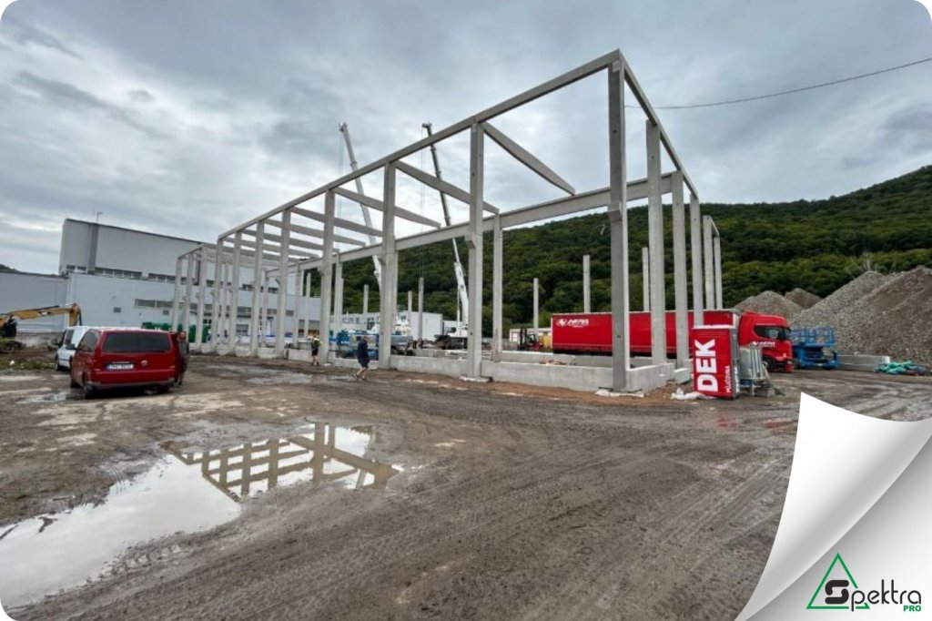 Objekt je založen a probíhá výstavba železobetonového prefabrikovaného skeletu, pokračují rozvody inženýrských sítí.